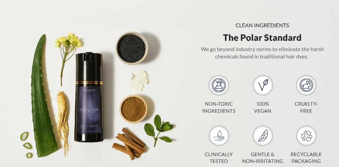 Thats why we created PolarHair—a 3-in-1 dye shampoo that covers grays in just 10 minutes, with no mess, no harsh chemicals, and zero compromises.